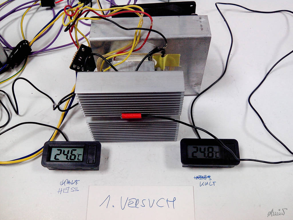 Der Versuch mit einem Peltier-Element sollte die Kühlleistung des