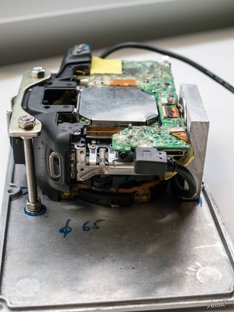 Das nun offene Kameragehäuse wird mit einer kleinen Aluminiumplatte