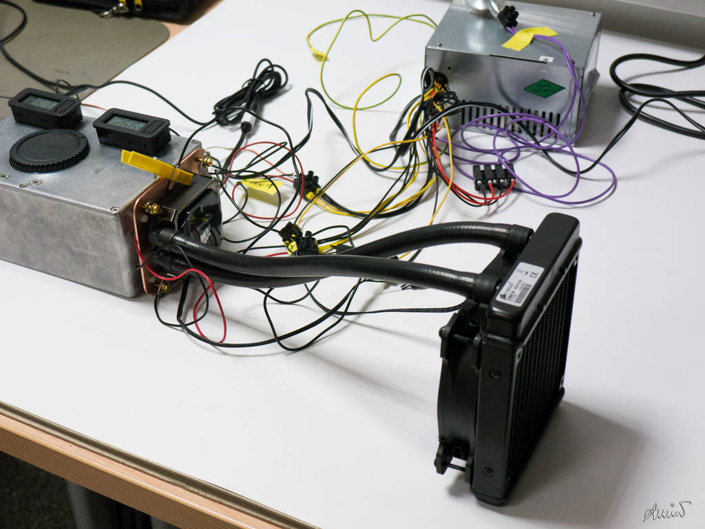 | Allgemein betrachtet ist die Kühlleistung mit 2 Pelier-Elementen und der oben beschriebenen Dimension der Kühlkörper höher als nur mit einem einzelnem Peltier-Element. |