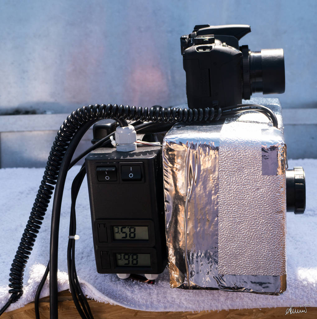 Daher entschied ich mich für die einfache Variante, die die gesamte Elektronik kühlt und eine mögliche Taubildung durch die Abwärme der Kameraelektronik verhindert. Ob diese Gedankengänge richtig sind, wird die Zukunft zeigen :-)