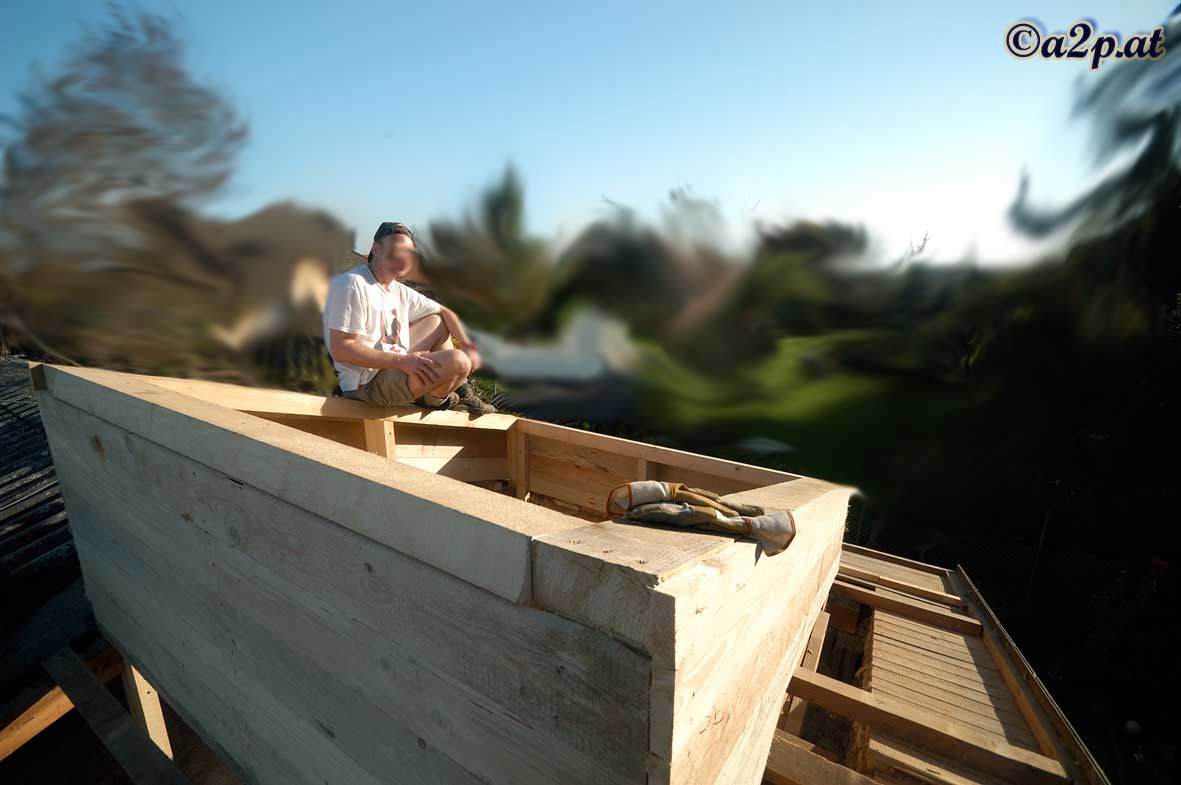 Der stolze Besitzer bei einer kleine Pause. Zu diesem Zeitpunkt waren ca. 6 Stunden vergangen und der Zimmermann nach einer zünftigen Jause bereits auf dem Heimweg.