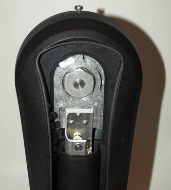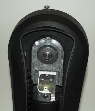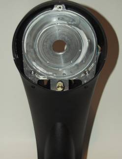 Von Vorne sieht man nun die entfernte Klemmplatte bzw. das entfernte Drehteller.