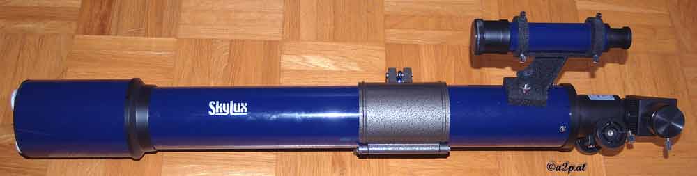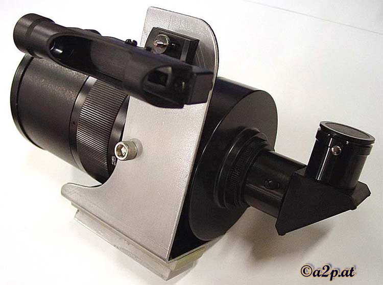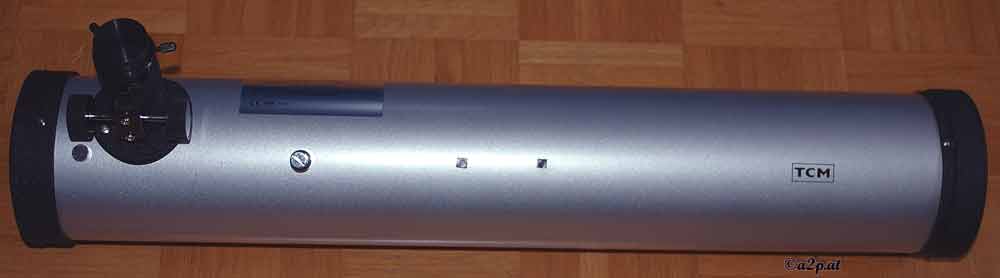 Im Bild oben ist die Halterung für die Astro-3 Montierung schon angebaut. Die Russentonne ist ursprünglich als Teleskopobjektiv entwickelt worden, ich denka aber viele Amateurastronomen verwenden sie nun als Leitrohr oder als günstiges Reiseteleskop. Ein Nachteil des sehr preisgünstigen Gerätes ist die geringe Öffnung (f10) die das Bild sehr abdunkelt.