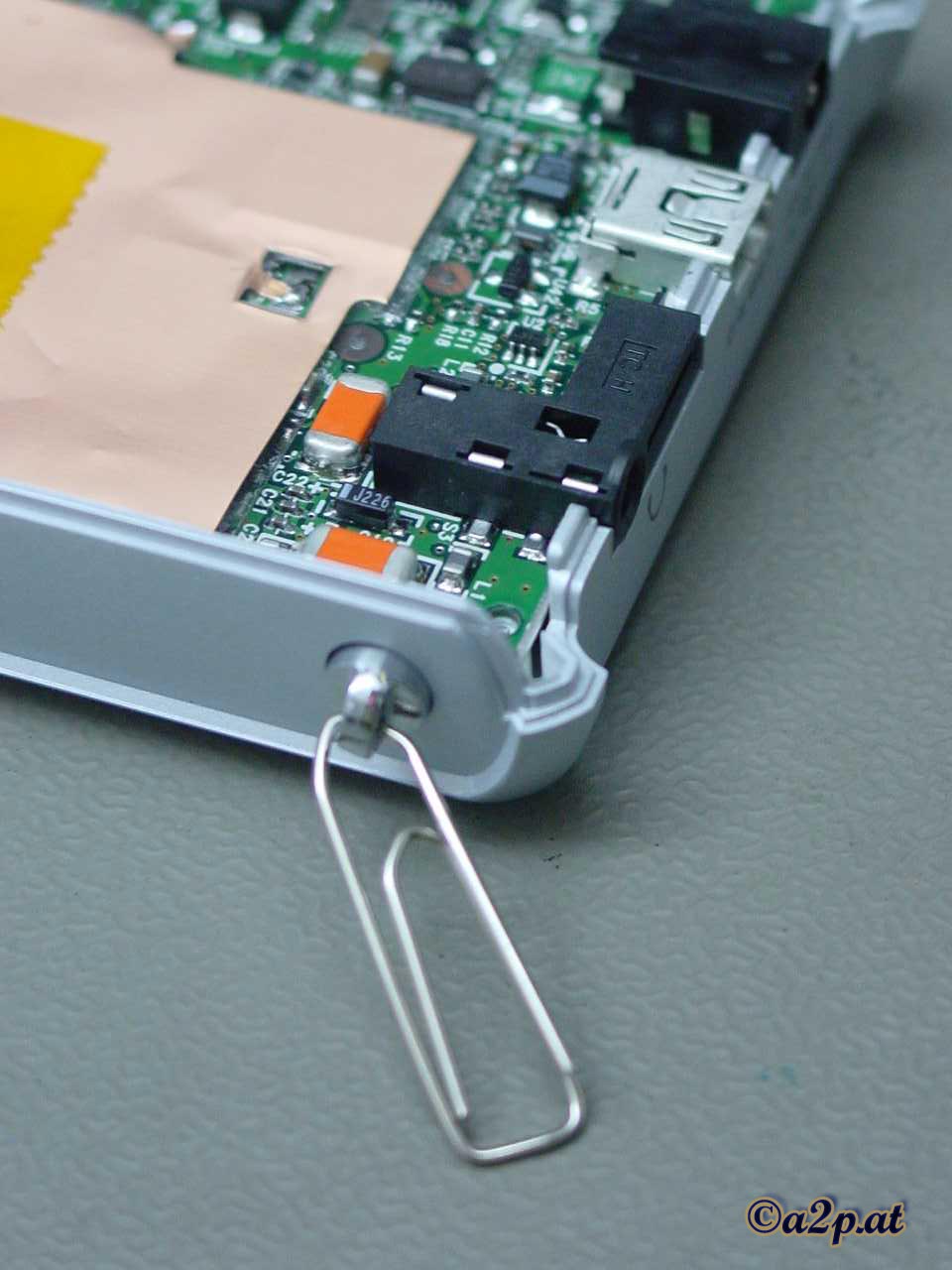 Originalgröße) Um zu verhindern, dass die Öse für die Halteschlaufe in das Gehäuseinnere fällt, habe ich eine Büroklammer als "Sicherung" verwendet. |